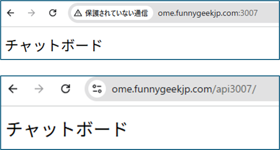 APIアプリのURL 例えば https://servername.com/app や /login などにアクセスしたときに、ポート番号 http://localhost:3000 などに遷移させる設定